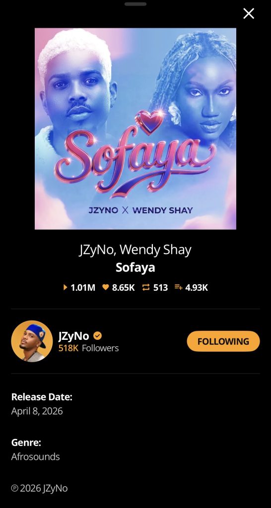 JZyNo’s latest single “Sofaya”, released on April 8, 2025, has hit a major milestone, racking up 1 million total streams just four days after its release. This impressive feat is a testament to JZyNo’s growing popularity and influence in the music scene. The song, which features Wendy Shay, has been making waves and resonating with listeners.